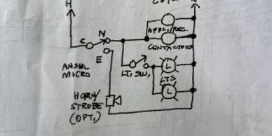 There were two existing microswitches. We wired one to cut power to the lights, intake fan and all electrical appliances under the hood. The other one activates the low voltage relay in the C02 sensor control to trigger the gas valves electric shut off. An additional microswitch had to be installed to prevent the exhaust fan from loosing power during an EMERGENCY.